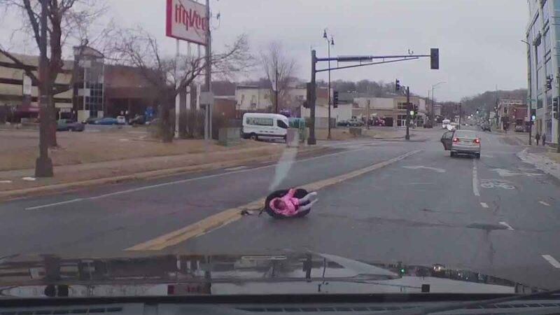 Un hombre que circulaba por las calles de Mankato, en el estado de Minnesota (Estados Unidos) encontró una situación muy peligrosa. La persona que iba en el carro de adelante dejó caer a su hijo del vehículo. El niño de dos años estaba seguro en el asiento para niños del vehículo, pero este asiento se salió de su vehículo.