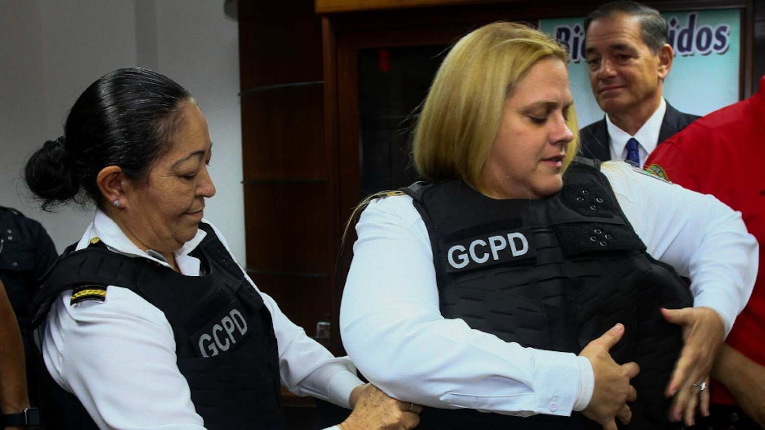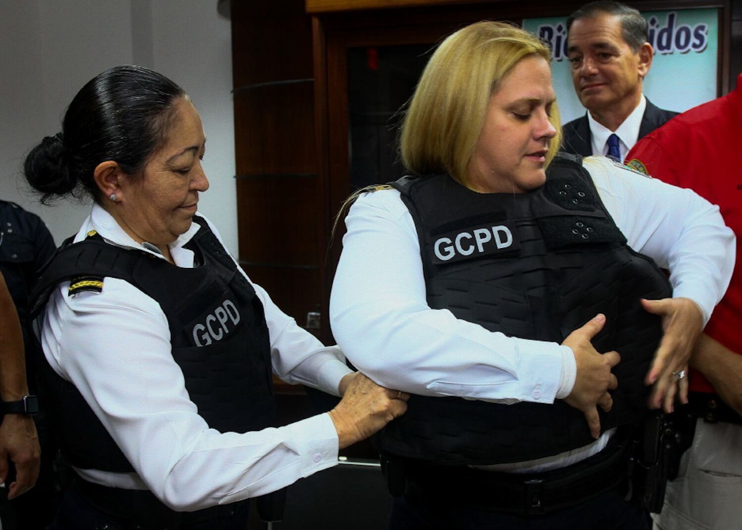 El alcalde de Guaynabo, Ángel Pérez Otero entregó hoy chalecos a prueba de balas especialmente diseñados para mujeres como parte de los esfuerzos para dotar a la policía municipal.