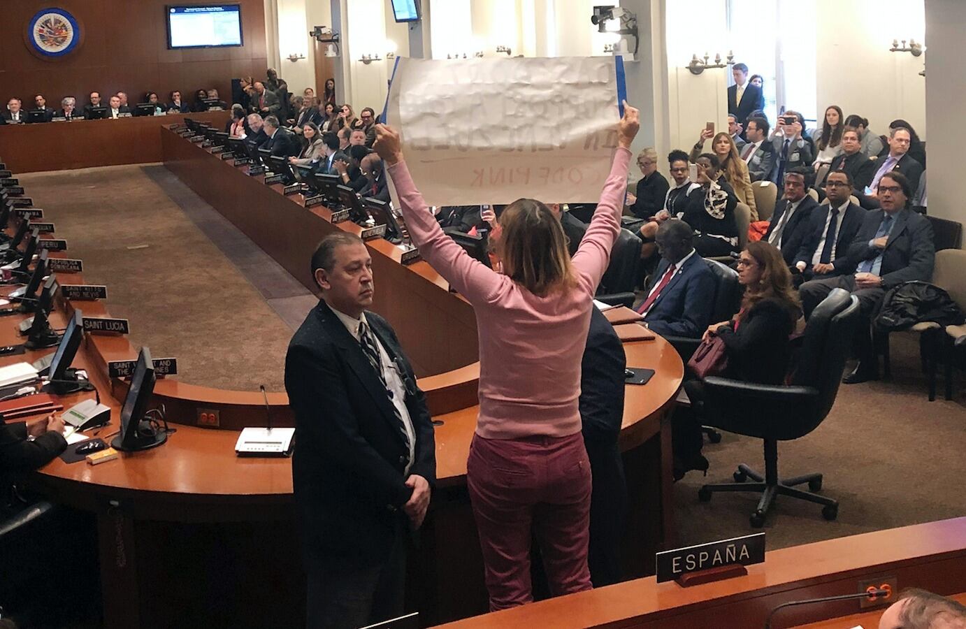 “Estoy horrorizada por este golpe de estado en marcha”, dijo a The Associated Press, mientras agentes de seguridad la retiraban del edificio de la OEA. “Mi corazón está con el pueblo de Venezuela”.