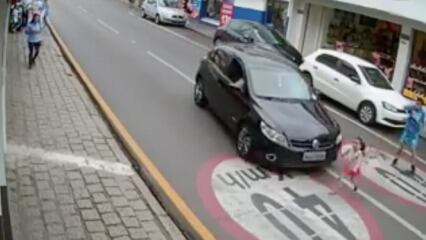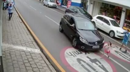 Un automovilista logró frenar su auto de emergencia luego de que una niña cruzó la calle sin precaución.