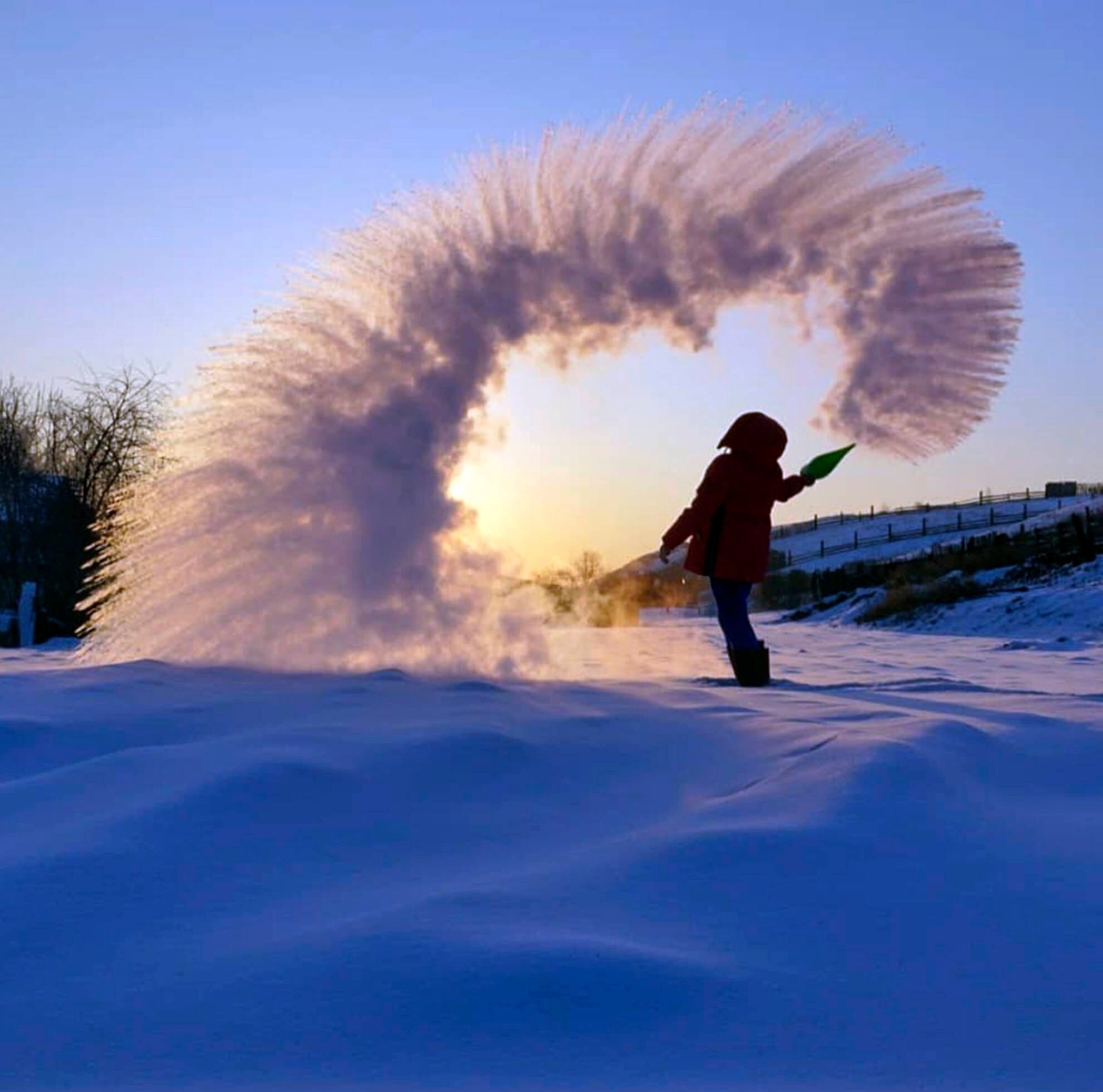 Cientos de usuarios de redes sociales han publicado fotografías y videos bajo el hashtag #dubakchallenge, o “reto del frío”, mostrando a sus seguidores cómo agua hirviendo lanzada al ambiente gélido instantáneamente se condensa en un elaborado patrón de cristales de hielo.