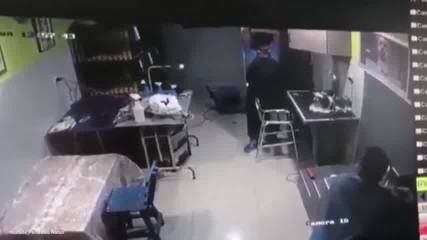 En las imágenes se observa al empleado sacudir una mano como señal de que el Shih Tzu de nombre ‘Teo’ lo había mordido.
