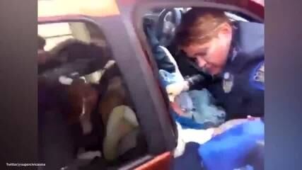 En el video difundido en redes sociales se observa a dos policías apoyar a la mujer. Uno de los elementos le da indicaciones a la madre del pequeño mientras lo revisa.
