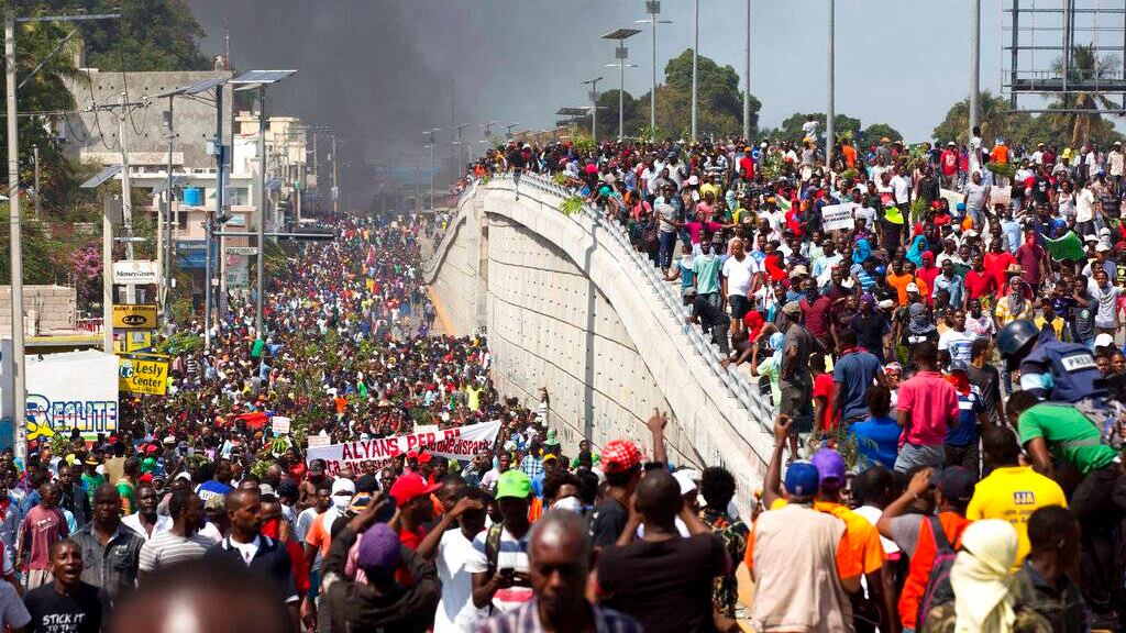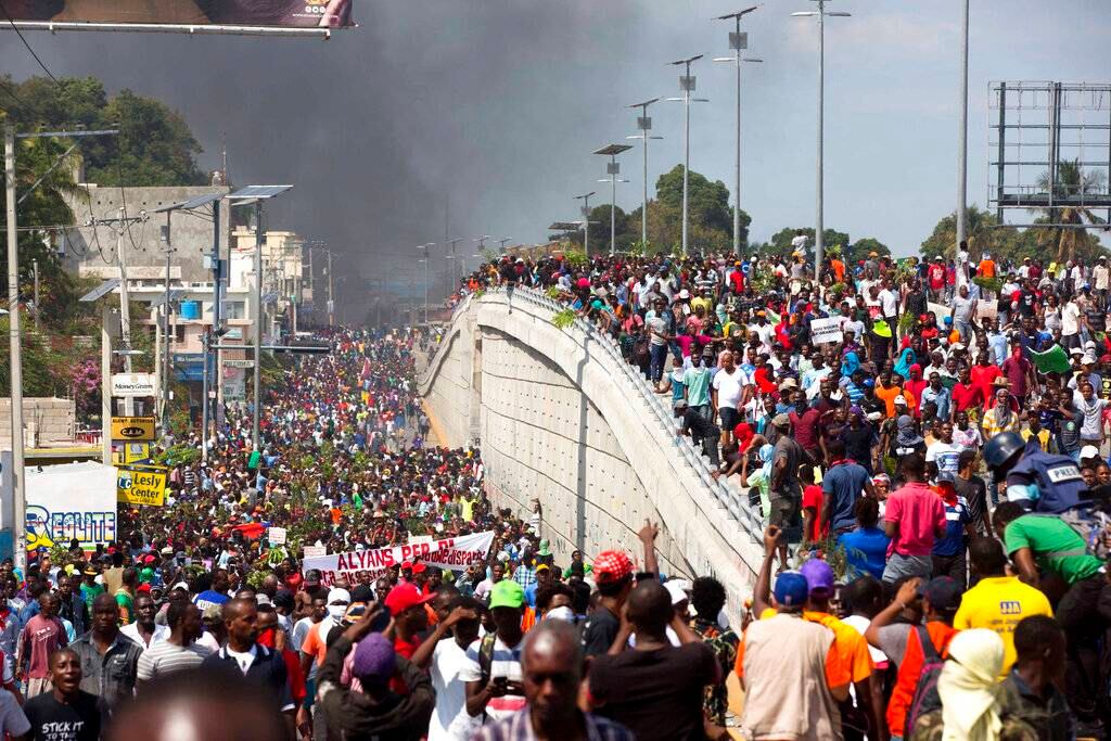 Los manifestantes protestan por la alta inflación y el fracaso del gobierno en enjuiciar a los responsables de un desfalco con dinero del petróleo venezolano subsidiado a Haití.