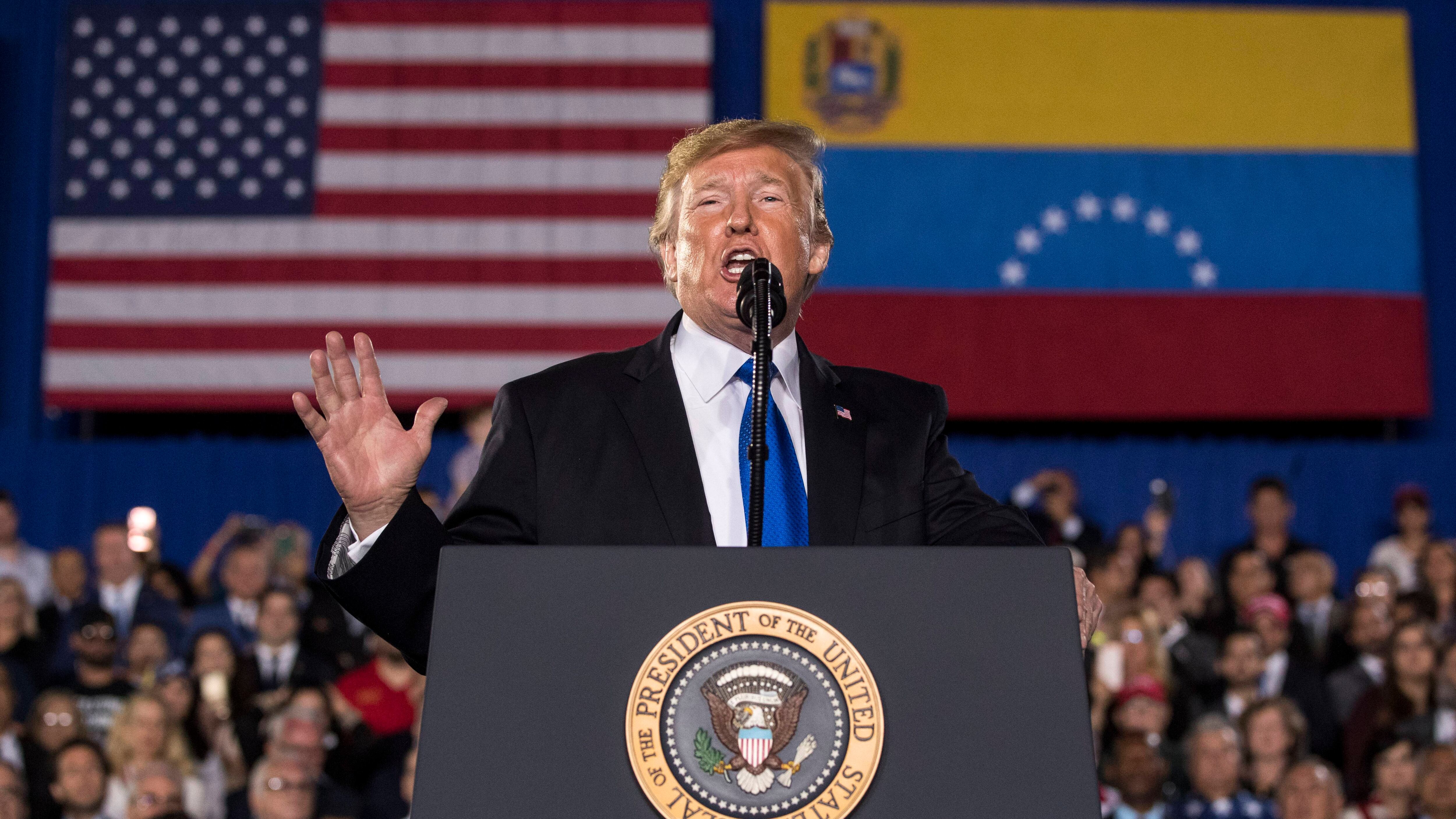 Trump fue presentado por la primera dama Melania Trump y estuvo acompañado por el secretario de Comercio Wilbur Ross, el gobernador de Florida, Ron DeSantis, y los senadores Marco Rubio y Rick Scott, abiertos críticos del gobierno de Maduro. Trump habló también de los gobiernos socialistas en Cuba y Nicaragua, países que tienen grandes comunidades de expatriados en el área de Miami.