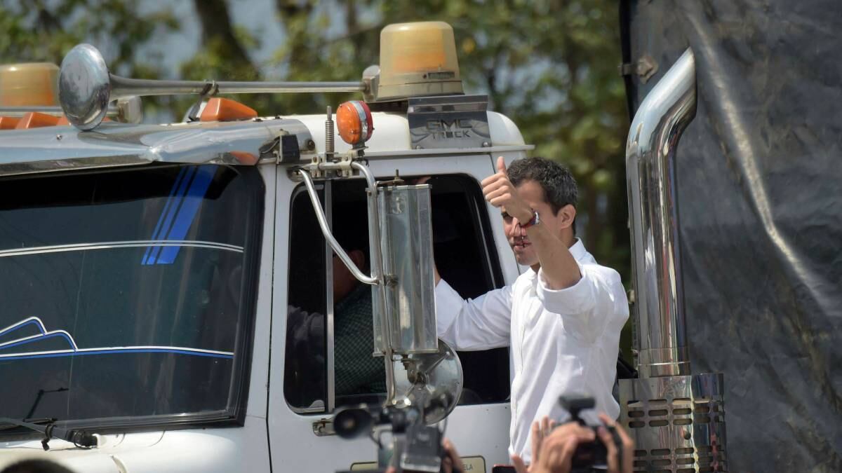 El autoproclamado presidente encargado de Venezuela Juan Guaidó aseguró que la ayuda humanitaria ya está ingresando al país en la frontera con Brasil.