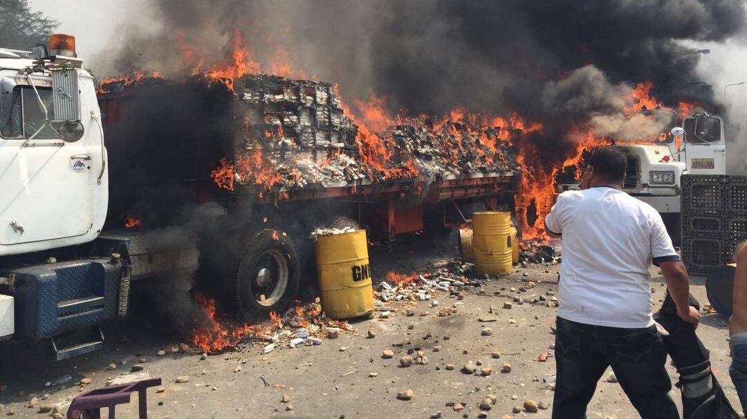 Parte de la ayuda humanitaria que transcurría por el puente internacional Francisco de Paula Santander hacia Venezuela fue quemada una vez llegó a la jurisdicción venezolana.