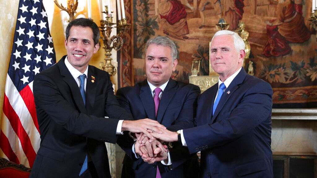 Pence llegó el lunes a la capital colombiana para discutir con sus aliados latinoamericanos los siguientes pasos ante la crisis en Venezuela, incluidos nuevos mecanismos para entregar ayuda humanitaria a los venezolanos, después de que el fin de semana falló un primer plan para introducir alimentos y medicinas.
