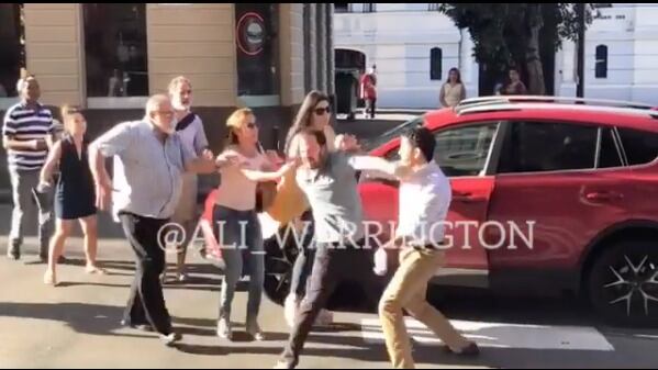 Según se explica en la publicación del locutor Alí Warrington, el caballero que conducía el vehículo se bajó y comenzó a pelear con el otro caballero en medio de la calle. Posteriormente, ambos fueron separados por las personas que se encontraban en la zona del Viejo San Juan.