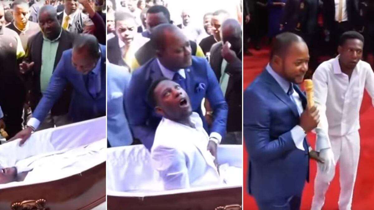 En las imágenes se ve a un muerto en el ataúd destapado mientras el pastor reza. Los seguidores del religioso alzan las manos y cierran sus ojos como símbolo de fe.