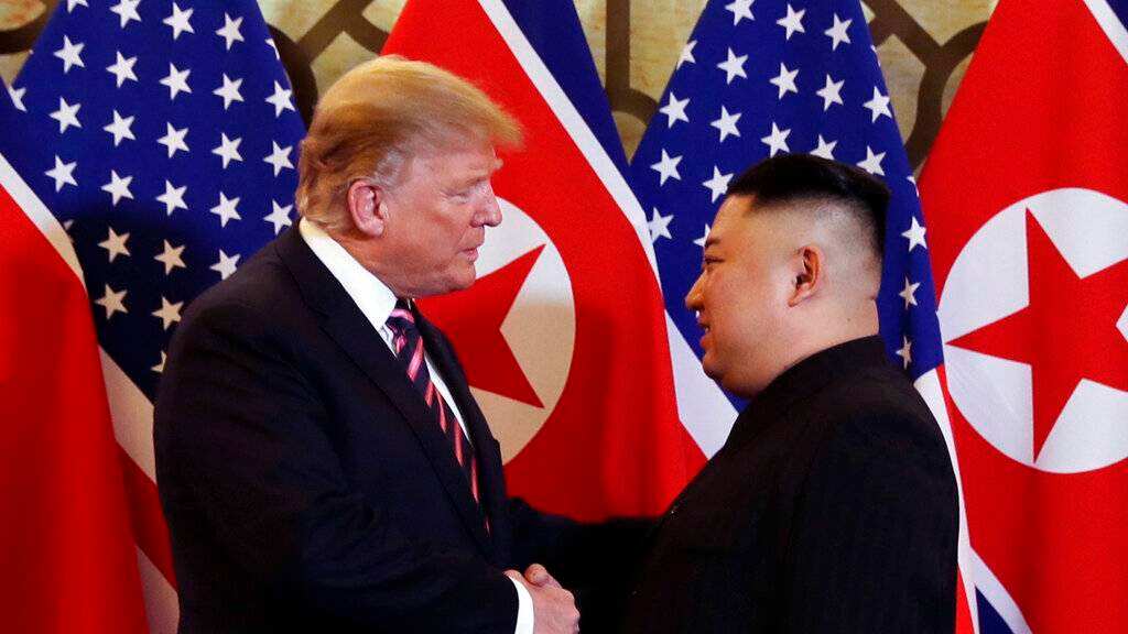 Los dos sonrieron y se estrecharon las manos frente a una hilera de banderas estadounidenses y norcoreanas alternadas. Posaron para las cámaras antes de encerrarse para tête-à-tête privado, similar al de su primera reunión el año pasado en Singapur.