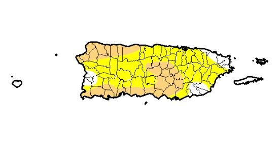 Entre los 35 municipios con partes o con la totalidad bajo este nivel de sequía están: Rincón, Aguada, Aguadilla, Moca, Isabela, Quebradillas, San Sebastián, Camuy, Hatillo, Arecibo y Barceloneta.