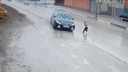 Sin tiempo ya para retroceder, el niño trató de esquivar el auto frenando su carrera, pero lo que en realidad lo salvó fue el volantazo que dio el conductor del vehículo.