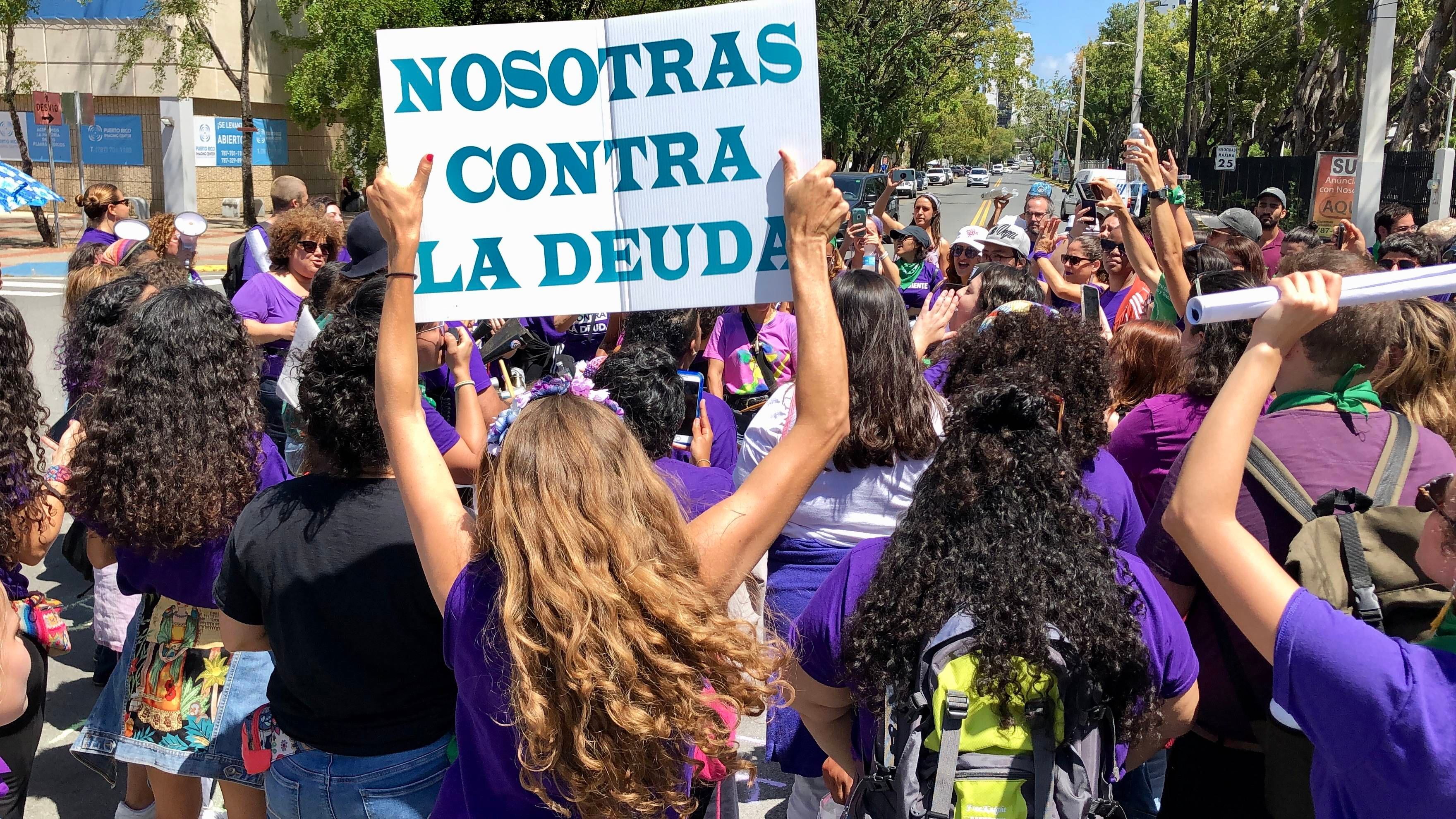 Decenas de mujeres y hombres marcharon hoy en la Milla de Oro en Hato Rey, para protestar en contra de la deuda pública del Gobierno de Puerto Rico y denunciar el papel de la banca en la financiación de esa deuda. En el contexto del Día Internacional de la Mujer, el nutrido grupo de manifestantes alzó la voz ante los efectos de la crisis económica provocada por la deuda sobre las mujeres, pero también sobre toda la población puertorriqueña.