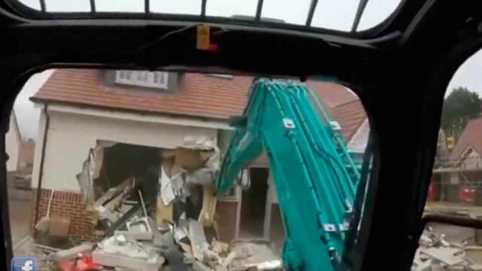 Por esta razón una tarde, mientras todos salieron a tomar un descanso, tomó una grúa y destruyó cinco de las viviendas que se habían construido.