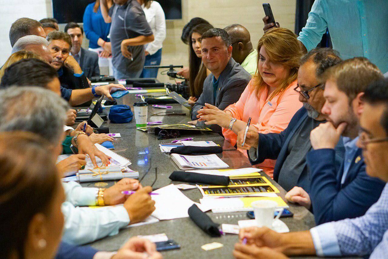 La comisionada residente, Jenniffer González Colón, convocó a alcaldes federados y asociados para que de manera representativa pudieran presentarle a los miembros del Comité de Recursos Naturales de la Cámara de Representantes federal, las necesidades y proyectos de su municipios que necesitan acción federal así como sus preocupaciones con el proceso de recuperación.