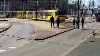Las imágenes muestran a la policía acordonando el área cerca de un tranvía.