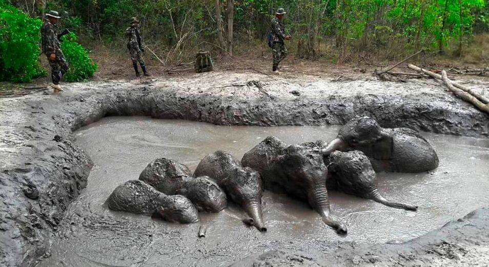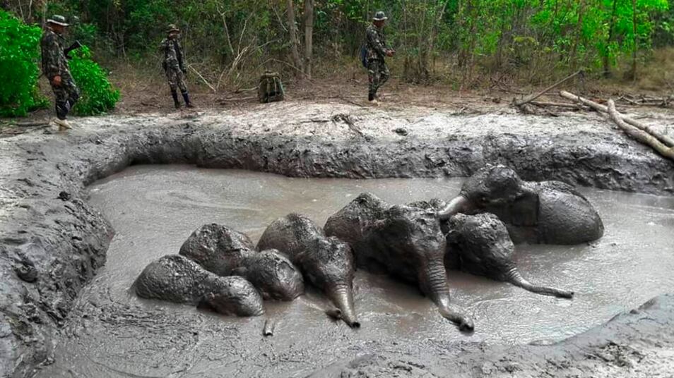 BANGKOK — Los guardabosques de un parque nacional en el noreste de Tailandia rescataron a seis crías de elefante varadas en un charco de lodo.