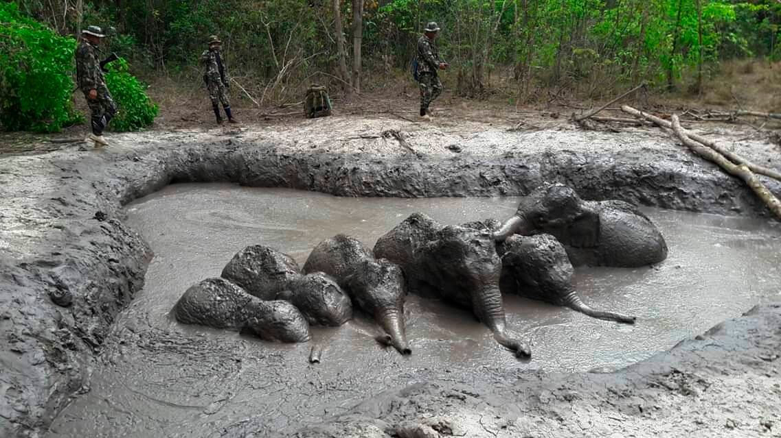 Los guardabosques de un parque nacional en el noreste de Tailandia rescataron a seis crías de elefante varadas en un charco de lodo. Los animales no podían salir porque no podían trepar por las resbaladizas orillas. Los rescatistas tardaron cinco horas cavar una senda para sacarlos el jueves. Te podría interesar: Avanza medida antidiscrimen en el empleo por cannabis medicinal Otro intento por la estadidad en el Congreso Puertorriqueña con síndrome de Down cumple sueño de ser modelo Un video grabado por los agentes del Parque Nacional Thap Lan, en la provincia de Nakhon Ratchasima, muestra a los elefantes saliendo uno a uno del barro. Los trabajadores encontraron a las crías varadas entre el lodo el miércoles por la tarde, explicó el director del parque, Prawatsart Chantep, agregando que había indicios de que la que se creía que era su manada andaba por las inmediaciones. No estuvo claro cómo los elefantes quedaron varados en el lodo.
