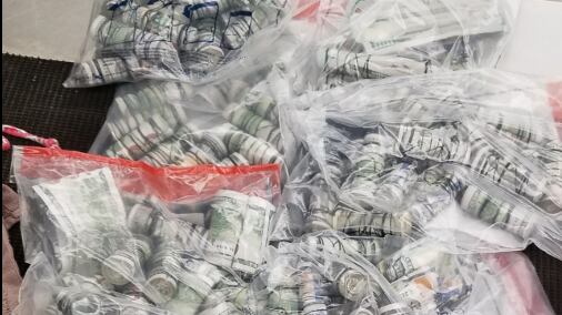 Un can de CBP descubrió trece paquetes con dólares escondidos debajo de la alfombra, entre los asientos del conductor y del pasajero, por un total de 214,037 dólares.