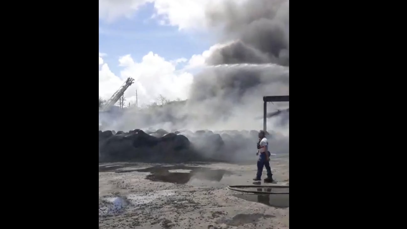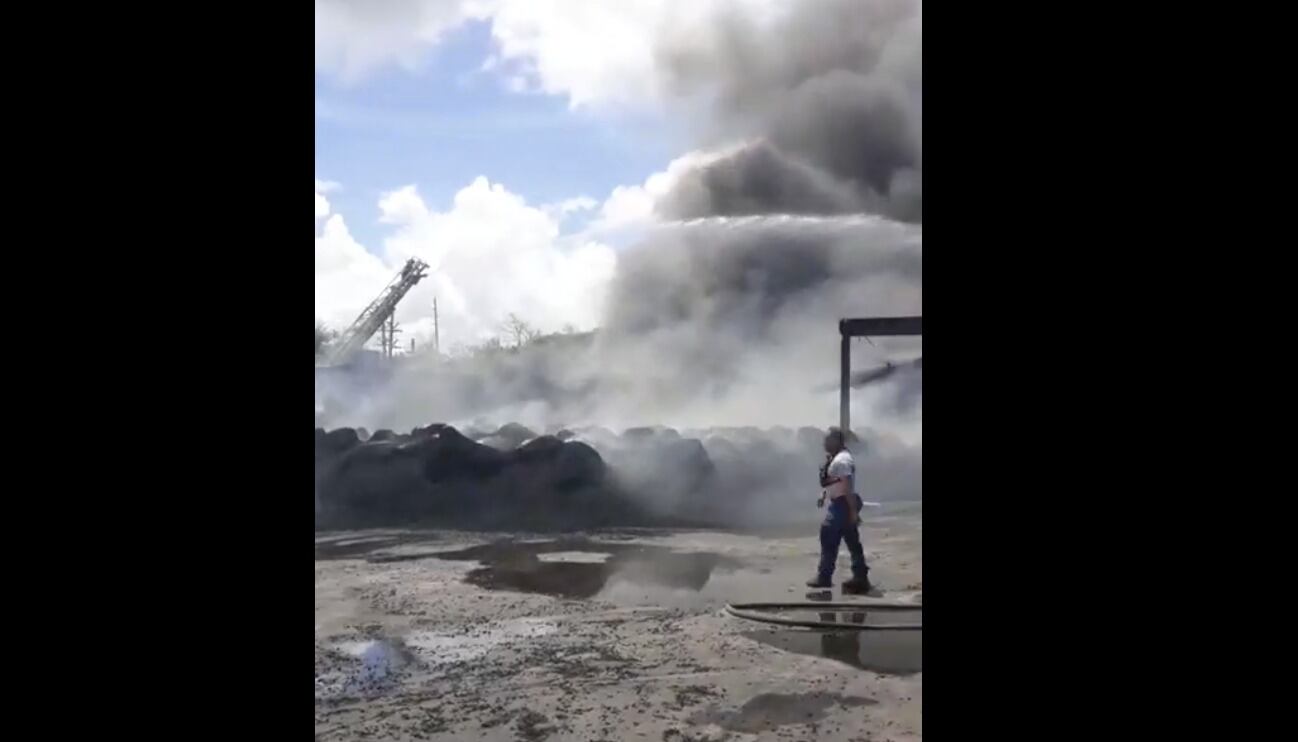 Diferentes unidades del Cuerpo de Bomberos lograron contener un fuego reportado en las facilidades de la fábrica recicladora de gomas Eco Green Recycle en la carretera PR-189 en Juncos.