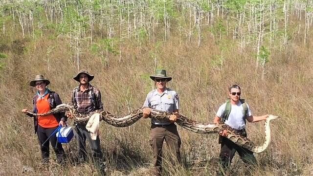 El personal del parque estaba utilizando pitones macho con radiotransmisores para localizar a las hembras con capacidad de criar, dentro de las operaciones para eliminar a esta especie invasiva.