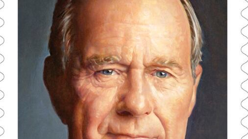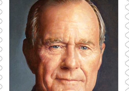 La estampilla postal tiene un retrato de Bush pintado por el artista Michael J. Deas.