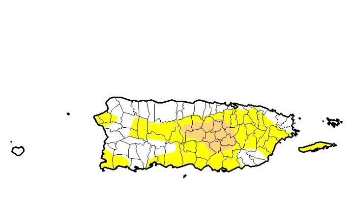Los municipios bajo este nivel de sequía son: Ciales, Morovis, Corozal, Naranjito, Toa Alta, Bayamón, Aguas Buenas, Caguas, Cidra, Cayey, Aibonito, Comerío, Barranquitas, Coamo y Orocovis.