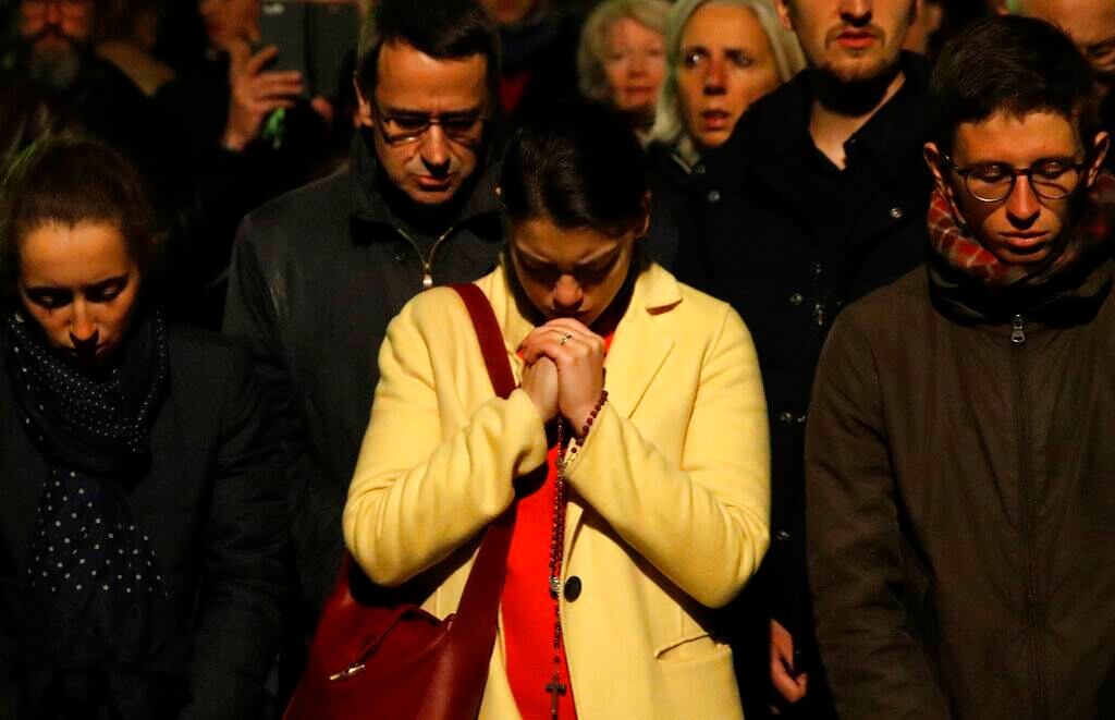 Un grupo de parisinos, por ejemplo, se arrodilló frente a la iglesia para cantar el Ave María. Notre Dame, de hecho, es una estructura de 800 años que se construyó en honor a la Virgen María y su nombre significa Nuestra Señora.