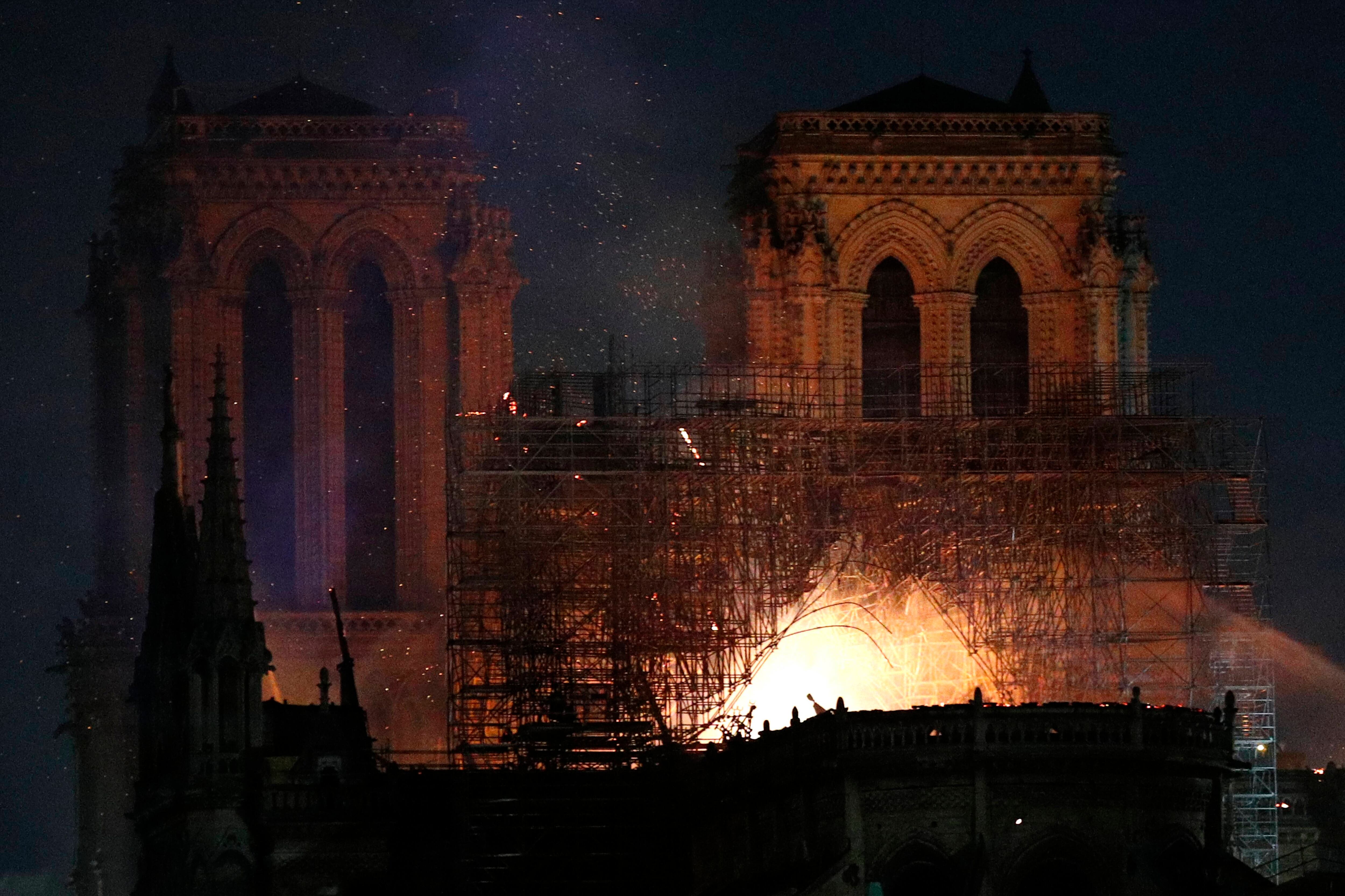 El jefe de los bomberos de París, Jean-Claude Gallet dijo que “dos terceras partes del techo de Notre Dame “están destrozadas”.