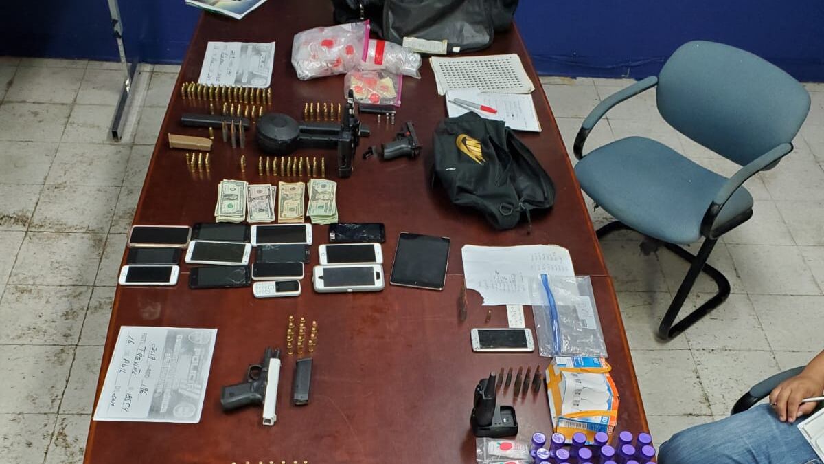 A Merced Villegas se le ocuparon 220 balas de diversos calibres, bolsas de marihuana; 13 celulares; una pistola marca “Italy” automática; dos radios “scanner”; una Tablet; dos cargadores con capacidad de 31 balas de nueve milímetros; un tambor capacidad de 50 balas de nueve milímetros; un cargador con capacidad 12 balas de nueve milímetros, $783.00 en efectivo y parafernalia para procesar la droga.