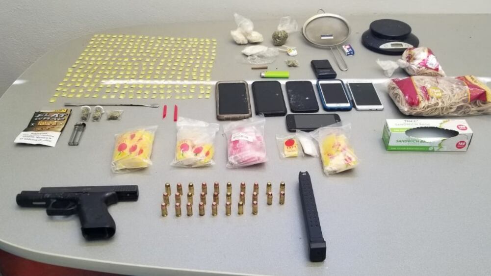 Según el parte policiaco, el diligenciamiento de la orden, expedida por la jueza Enid Cristina Rivera, fue realizada en el anexo a una residencia ubicada en la mencionada calle. Allí ocuparon una pistola Glock, calibre 40 modelo 22 y cargada con 28 municiones, dos bolsitas, dos envases, una bolsa con aproximadamente 10 gramos de marihuana, un cigarrillo de marihuana, 74 gramos de crack, una bolsita de cocaína, parafernalia, seis celulares y 2,431 dólares en efectivo.