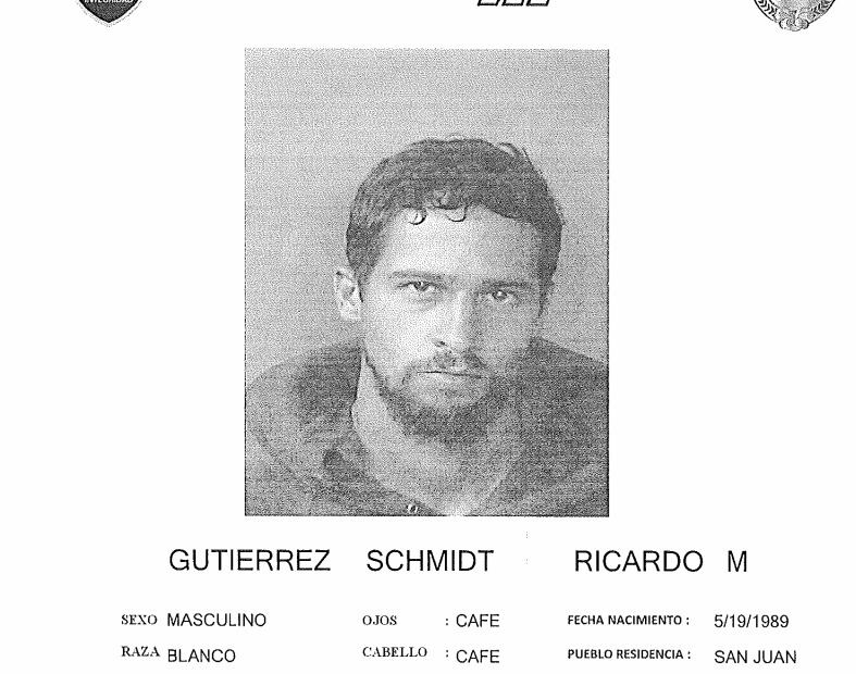 Los agentes adscritos a la División de Robo del Cuerpo de Investigaciones Criminales (CIC) de San Juan realizaron el arresto de Gutiérrez Schmidt en las inmediaciones del mall San Patricio Plaza. Este era buscado desde el 13 de abril, cuando con un arma robó a su padre de crianza.