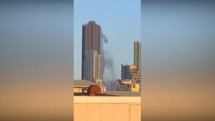 Las imágenes muestran el bloque de apartamentos de gran altura, Ancla Skysuites, balanceándose a medida que el terremoto golpea. El agua de la piscina del ático en el techo cayó al suelo. Video: AP.