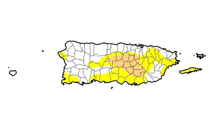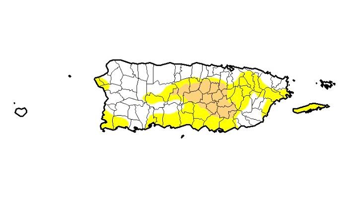 Según el último informe de la entidad federal, los municipios con partes o con la totalidad del terreno bajo el nivel de sequía moderada son: Utuado, Jayuya, Ciales, Morovis, Corozal, Naranjito, Toa Alta, Bayamón, Aguas Buenas, Cidra, Caguas, Cayey, Guayama, Salinas, Aibonito, Coamo, Comerío, Barranquitas, Orocovis y Villalba.