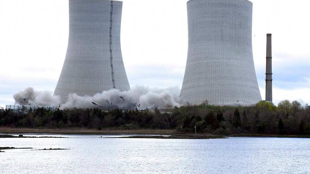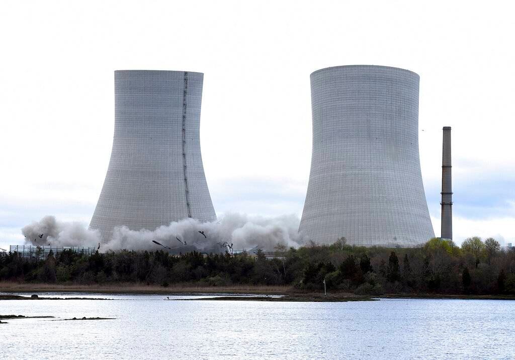 Fue cuestión de unos cuantos segundos para que dos torres de enfriamiento de más de 150 metros (500 pies) de altura, que pertenecían a la última planta generadora de electricidad mediante la quema de carbón de Massachusetts, se redujeran el sábado a escombros.
