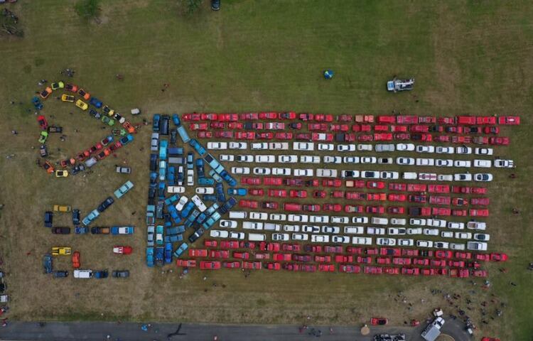 Carros azules, blancos, rojos y algunos amarillos y verdes, un gran “I Love PR” y la monoestrellada se podían apreciar desde vista área, esto luego de que la organización La Gran Parada de Autos Antiguos de Puerto Rico reclamara haber logrado la Parada de Autos Antiguos en Movimiento más grande.