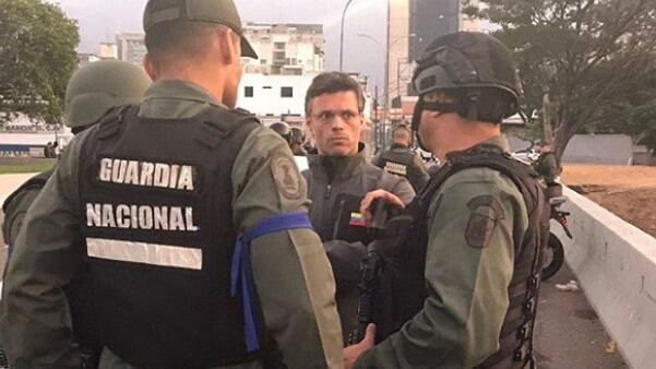 El líder opositor Juan Guaidó ha salido a las calles con un pequeño contingente de soldados fuertemente armados, acompañado por el activista detenido Leopoldo López, en un alzamiento militar.