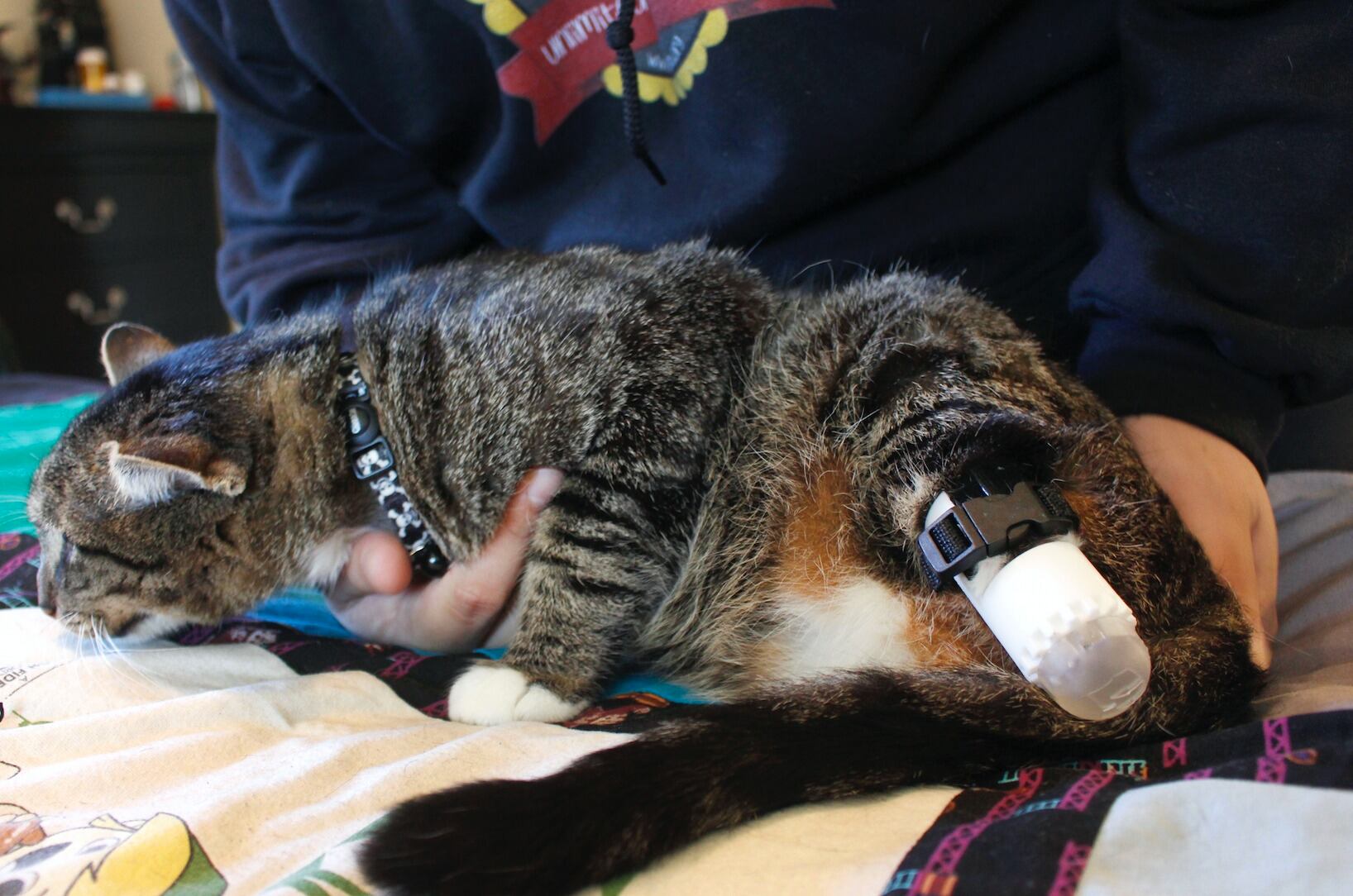 Un veterinario amputó parte de las patas del gato macho, al que el albergue le puso el nombre de Sargento Stubbs. Posteriormente, el personal de Community Cat pidió ayuda a los alumnos de una clase de ingeniería.