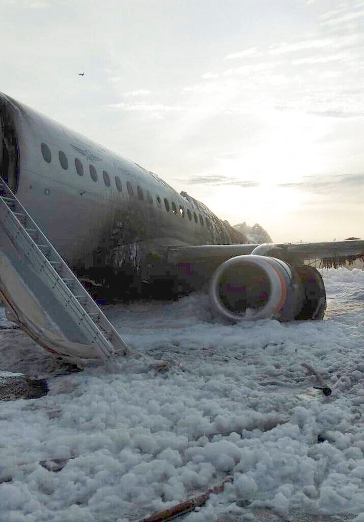 Imágenes mostradas en la televisión rusa mostraban la parte inferior del avión estallando en llamas y despidiendo una humareda negra tras un aterrizaje de emergencia el domingo por la noche. Los que escaparon saltaron del avión por toboganes inflables de emergencia a los costados de la aeronave y corrieron por la pista.