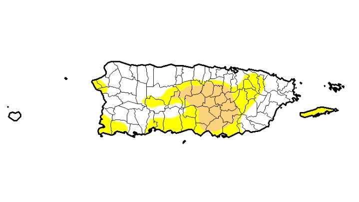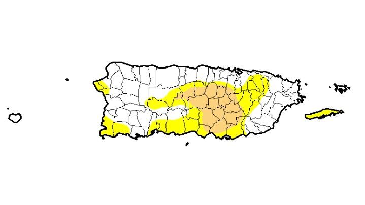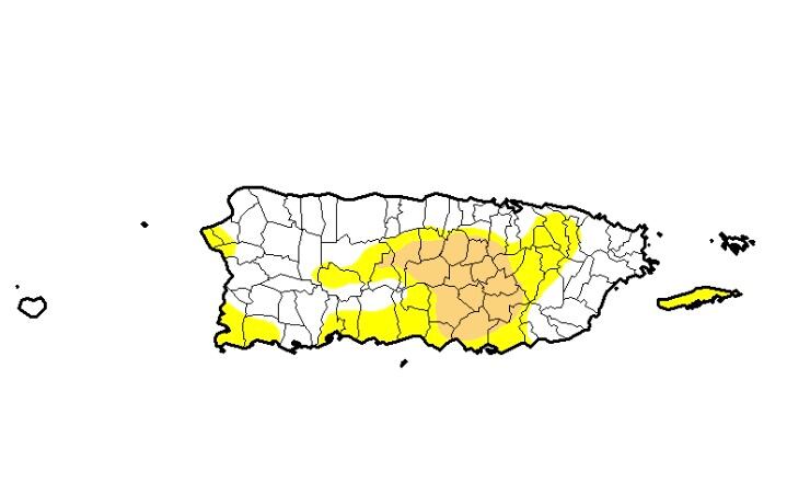 Según la entidad federal, los municipios con partes o con la totalidad del terreno bajo el nivel de sequía moderada son: Jayuya, Ciales, Morovis, Corozal, Naranjito, Toa Alta, Bayamón, Aguas Buenas, Cidra, Caguas, Cayey, Guayama, Salinas, Aibonito, Coamo, Comerío, Barranquitas, Orocovis y Santa Isabel.