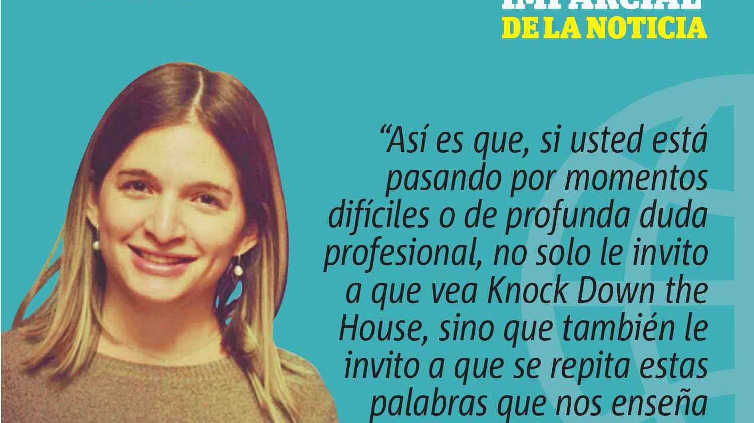 En lo personal, me fascinó el documental. Opino que está bien logrado y que presenta las contiendas políticas de estas mujeres de tal forma que inspira a cualquier ciudadano común a aspirar a un puesto político. Pero más allá del tema político, quedé impactada por cómo el documental también logra capturar un tema central que afecta a las mujeres en el ámbito profesional, conocido como el síndrome del impostor. Este síndrome se da cuando las personas piensan que no merecen el éxito que han alcanzado y se sienten como un fraude. Como todos los síndromes, afecta tanto a hombres como a mujeres, pero en tiempos recientes, se ha atribuido más como algo que sufren las mujeres, ello luego de que mujeres de gran renombre, como Michelle Obama, han aceptado que lo han atravesado. En Knock Down the House, se puede observar cómo las candidatas se cuestionan una y otra vez si están capacitadas para lograr sus cometidos. A través de la pantalla, se aprecia cómo las cuatro mujeres protagonistas del documental pasaron intensos momentos de frustraciones a raíz de sus dudas sobre sí mismas durante varios meses. Confieso que, en más de una ocasión, me sentí identificada. Muchas veces, en mi carrera profesional me he cuestionado si estoy lista para lograr algo o si tengo el conocimiento necesario para alcanzar una meta. Es una lucha constante entre decirme a mí misma que estoy igual de capacitada que mis colegas hombres, o sentir que quiero salir corriendo de donde estoy. Con el pasar de los años y la madurez que te va dando la vida, voy logrando controlar el síndrome del impostor, pues cada pequeño logro profesional me reafirma que puedo conseguir todo lo que me proponga sin importar cuán distante e inalcanzable aparente ser la meta. No obstante, me gustaría aprovechar este espacio para invitar a todos los que me leen a repetirse la mayor lección que me lleve del documental.