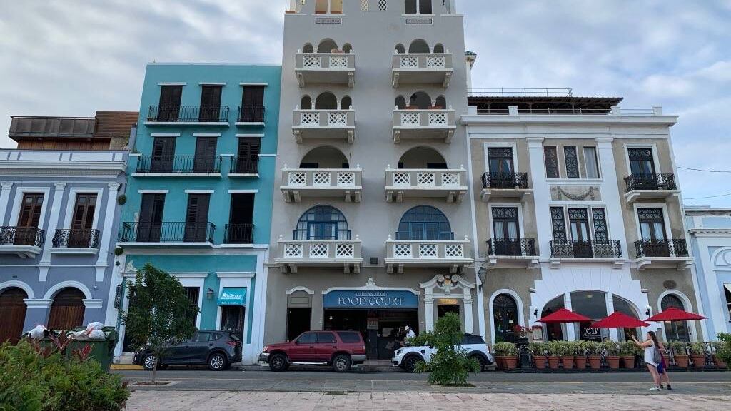 Al llegar a la Plaza Colón forman un semicírculo, algunos se tapan del sol con las manos y contemplan el edificio 405. Los cuatro pisos de arriba, con balcones que miran a la plaza, están abandonados. La primera planta, el Old San Juan Food Court, tiene una barra abierta que da hacia la acera, con billares y un pasillo que conecta al fondo con la cafetería El Sazón de Abuela.