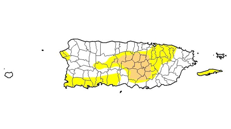 Según la entidad federal, los municipios con partes o con la totalidad del terreno bajo el nivel de sequía moderada son: Jayuya, Ciales, Morovis, Corozal, Naranjito, Toa Alta, Bayamón, Aguas Buenas, Cidra, Cayey, Salinas, Aibonito, Coamo, Comerío, Barranquitas, Orocovis.