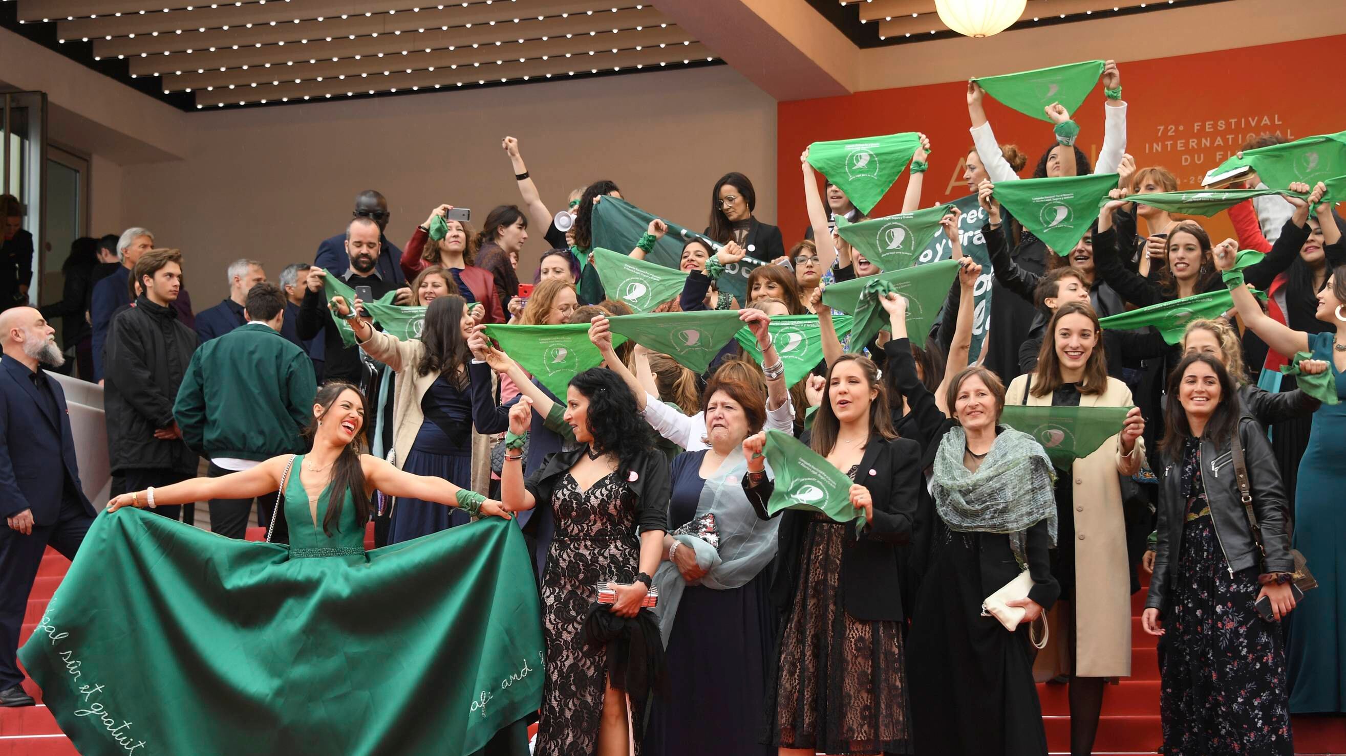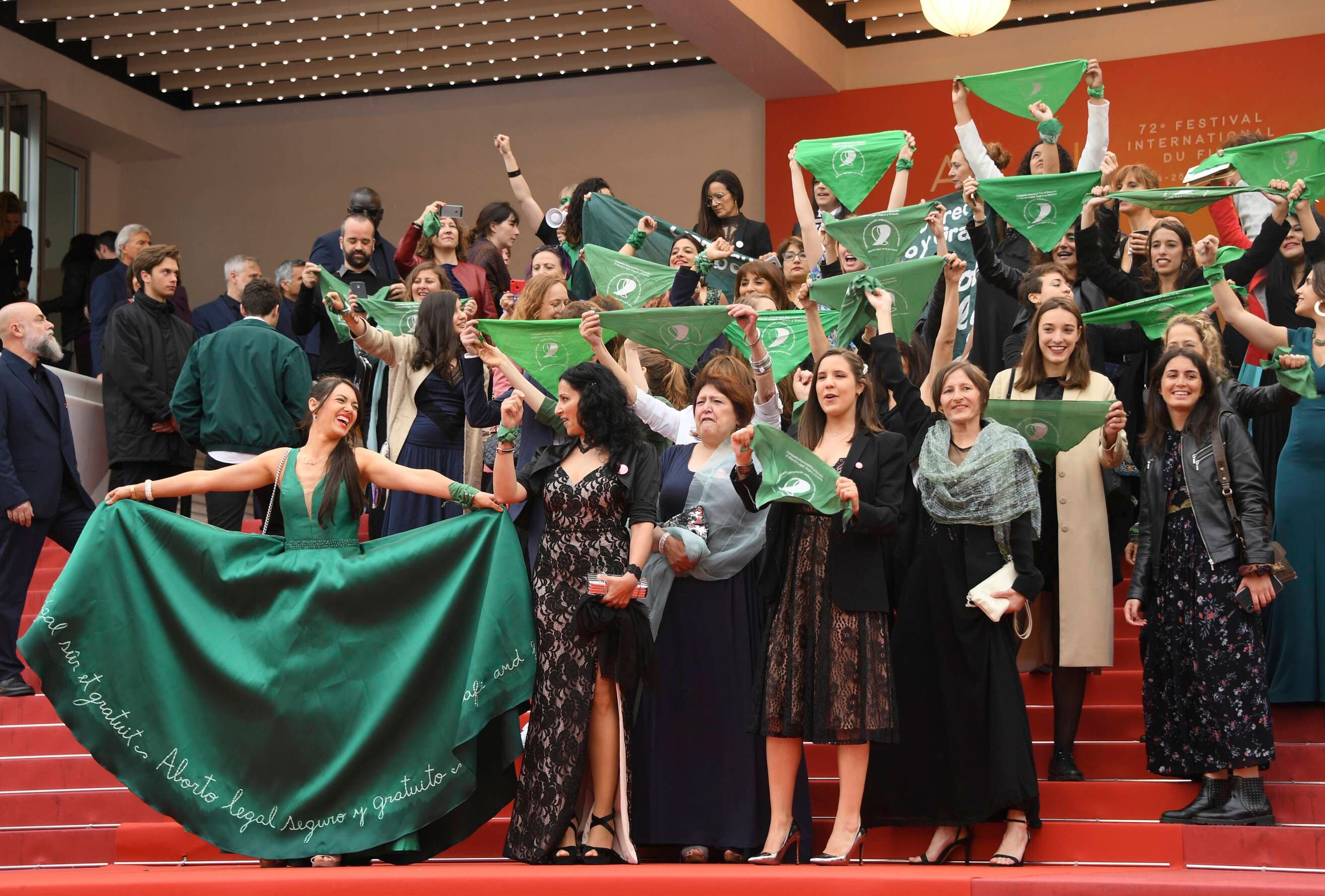 Anticipando el estreno de un documental argentino sobre el aborto, decenas de mujeres se manifestaron por el derecho de aborto en la alfombra roja del Festival de Cine de Cannes.