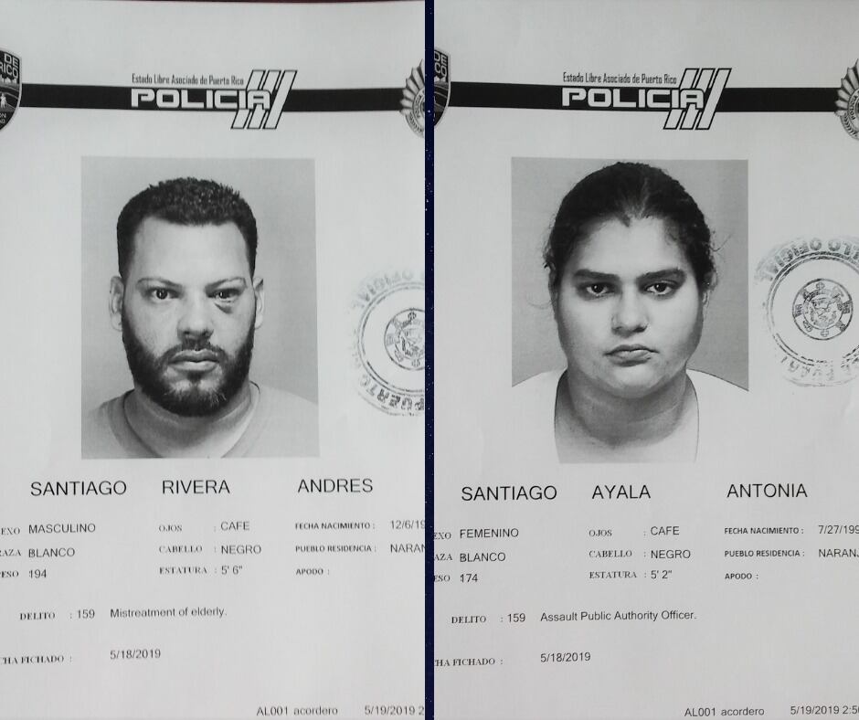 Según se informó, en horas de la noche de ayer Andrés Santiago Rivera, de 31 años de edad, y Antonia Santiago Ayala, de 22, estuvieron envueltos en un incidente de violencia contra mayores de edad. La Uniformada alegó que Santiago Rivera agredió en diferentes partes del cuerpo a sus padres Andrés Santiago Matos, de 61 años, y a Dalia Rivera Cruz, de 58, en hechos ocurridos en el sector Don Manolo, barrio Nuevo, de la carretera PR-815 en Naranjito.