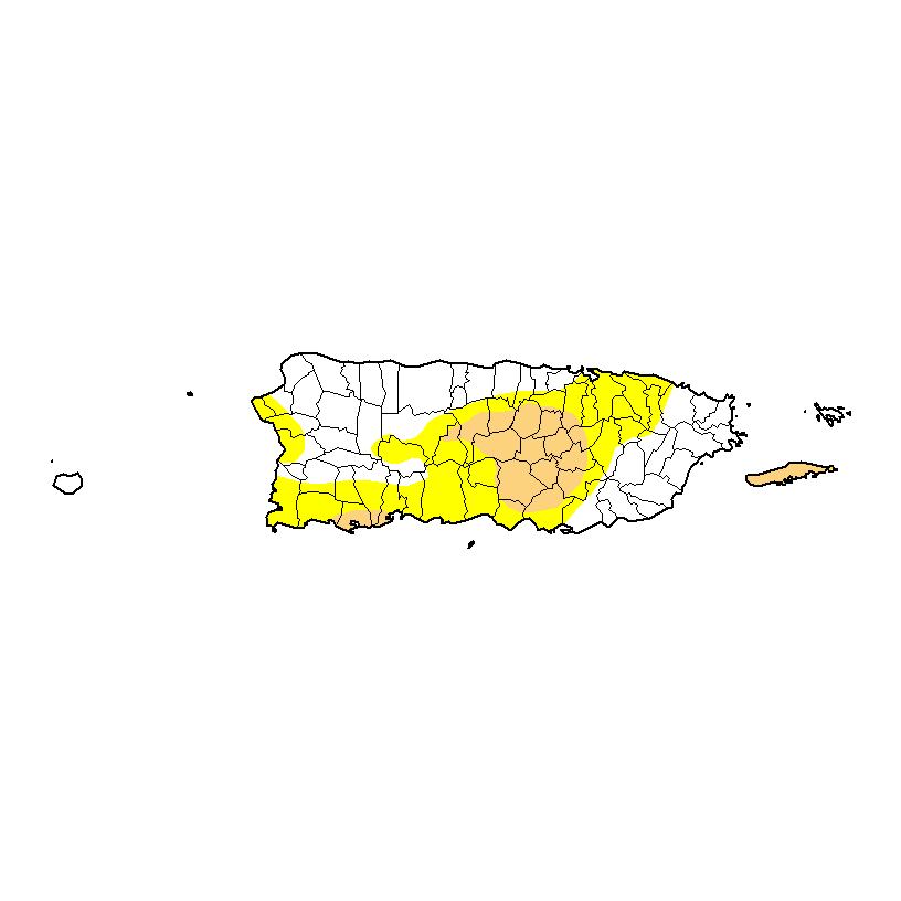 La entidad federal precisó que los municipios con partes o con la totalidad del terreno bajo el nivel de sequía moderada son: Utuado, Jayuya, Ciales, Morovis, Corozal, Naranjito, Toa Alta, Bayamón, Aguas Buenas, Cidra, Cayey, Salinas, Aibonito, Coamo, Comerío, Barranquitas, Orocovis, Santa Isabel y Villalba.