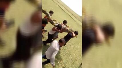Un enorme cocodrilo de 3 metros (11 pies) fue rescatado por los lugareños después de poner 59 huevos en el pueblo de Arada, en el este de la India.