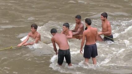 Los jóvenes se organizan en grupos, y mientras unos se sumergen en el río para recoger los residuos acumulados, otros seleccionan entre ellos los materiales con posible valor.