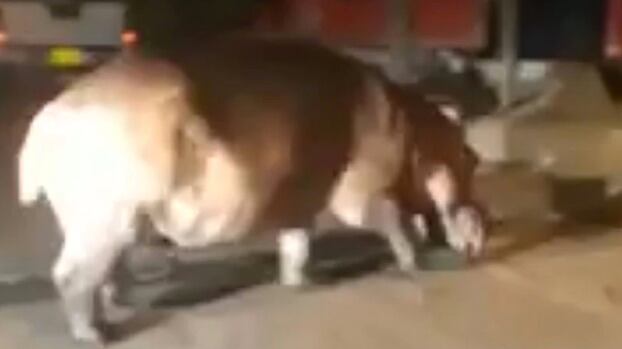 A través de las redes sociales se viralizó un video que muestra a un hipopótamo paseando por las calles de un pueblo colombiano. Esto ocurrió en Puerto Berrío, municipio del departamento de Antioquia. La prensa local asegura que el animal pertenece a Pablo Escobar.